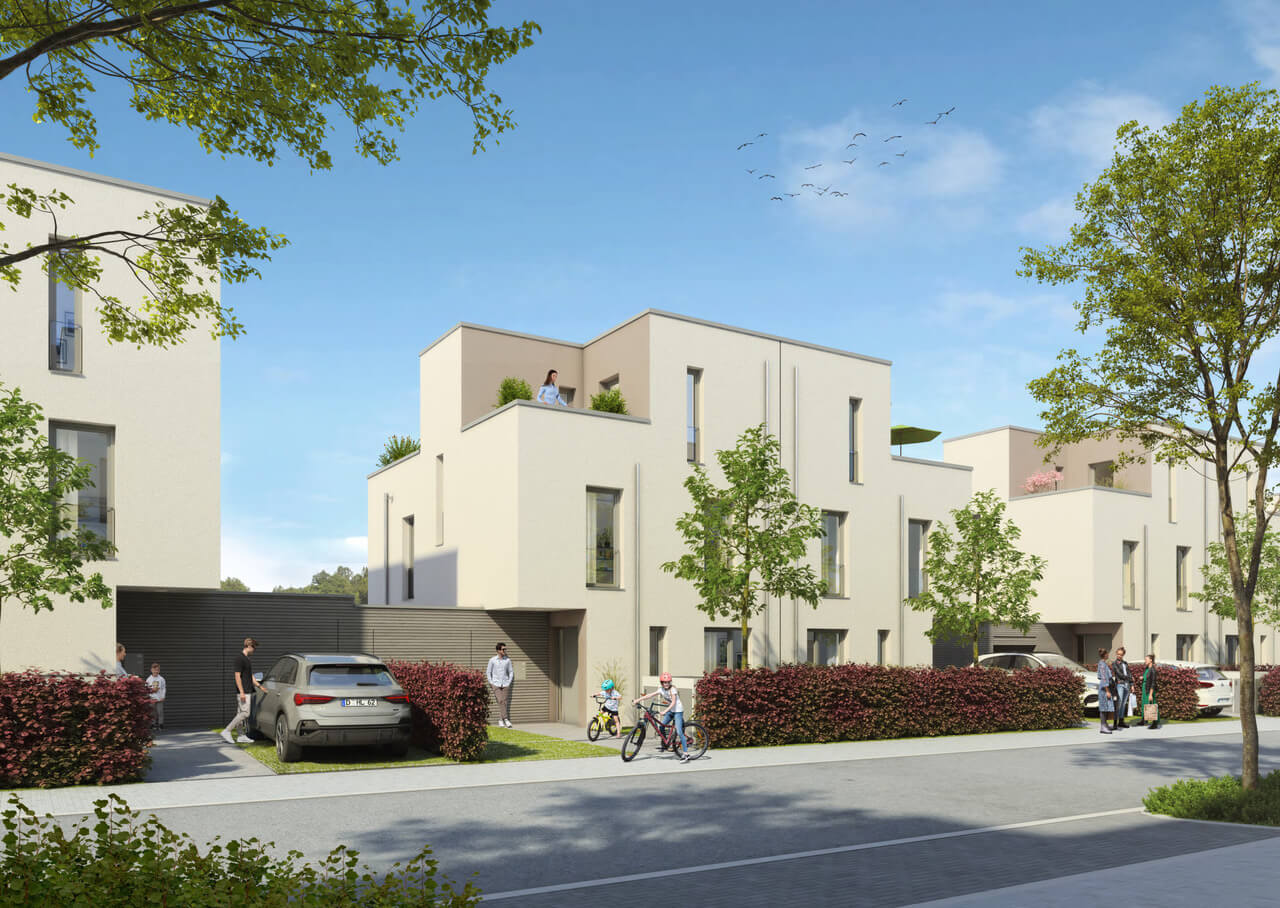 Der Rohbau von 52 Wohnungen und 18 Reihenhäusern für die Scholle 2 im Projekt „Wohnen im Hochfeld“ in Düsseldorf Unterbach hat begonnen.